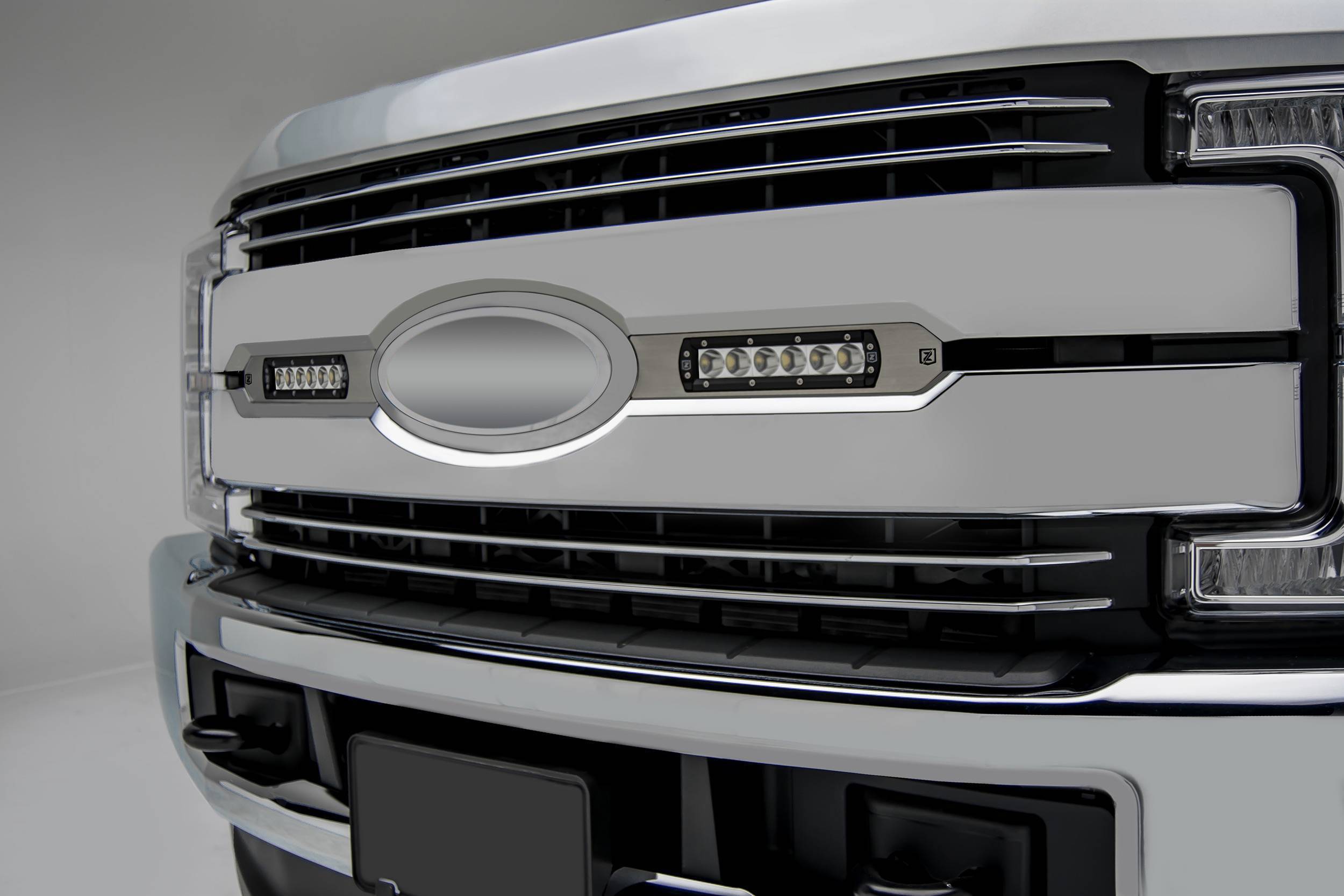2017-2019 Ford Super Duty Lariat, King Ranch OEM Grille LED Kit with (2) 6 Inch LED Straight Single Row Slim Light Bars - PN #Z415473-KIT
